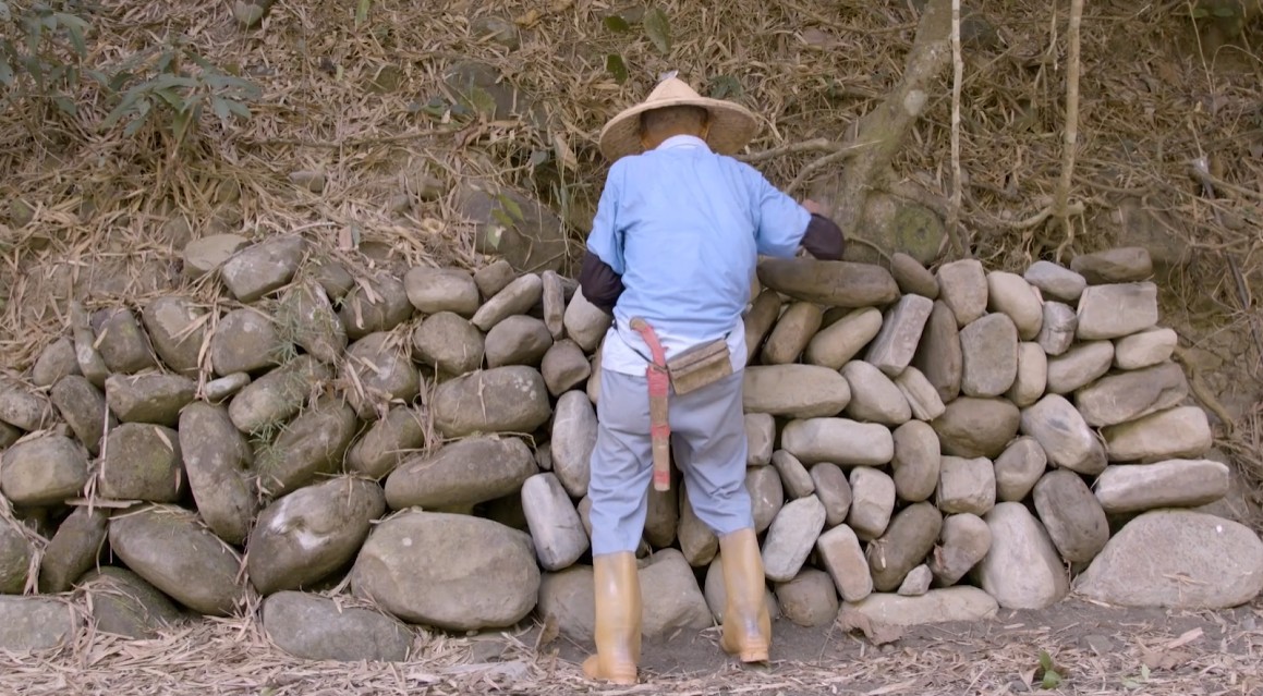 他的工法極其細緻,用「開槽」為下一層石頭預留空間,及「借石」運用鄰近石頭的支撐力彼此牽引。這種紮實的工法,讓這片梯田即便經過 40 年風雨仍屹立不搖。他的技藝,為人、土地與環境的和諧共處做出了最美示範,更讓農村傳統知識的價值得以延續。