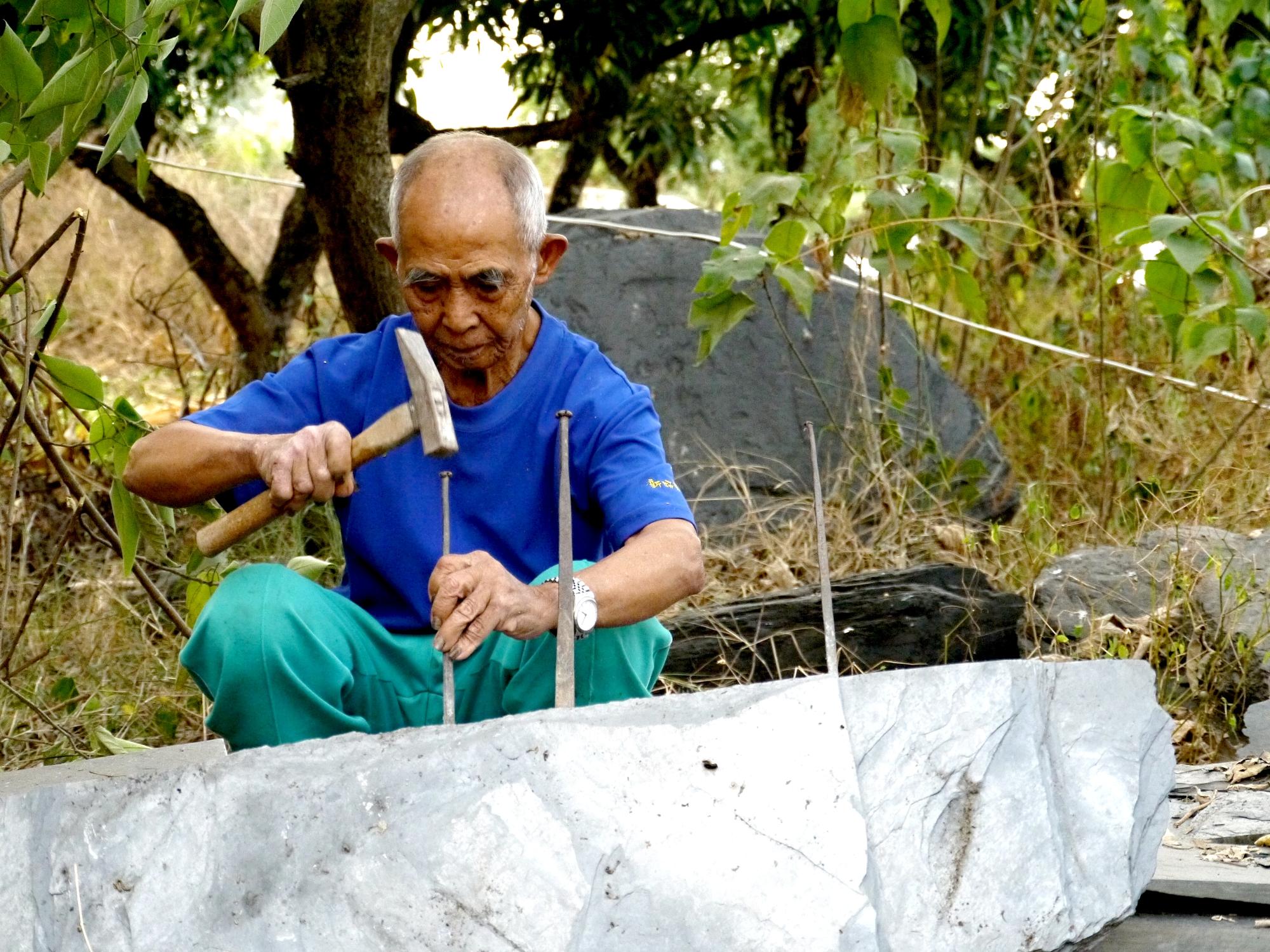 在隘寮北溪右岸的大武部落(Labuwan),九十多歲的禹弘仁(name Kelele,name為魯凱語大武語系中父執輩稱謂)是魯凱族頂尖的石板工匠。