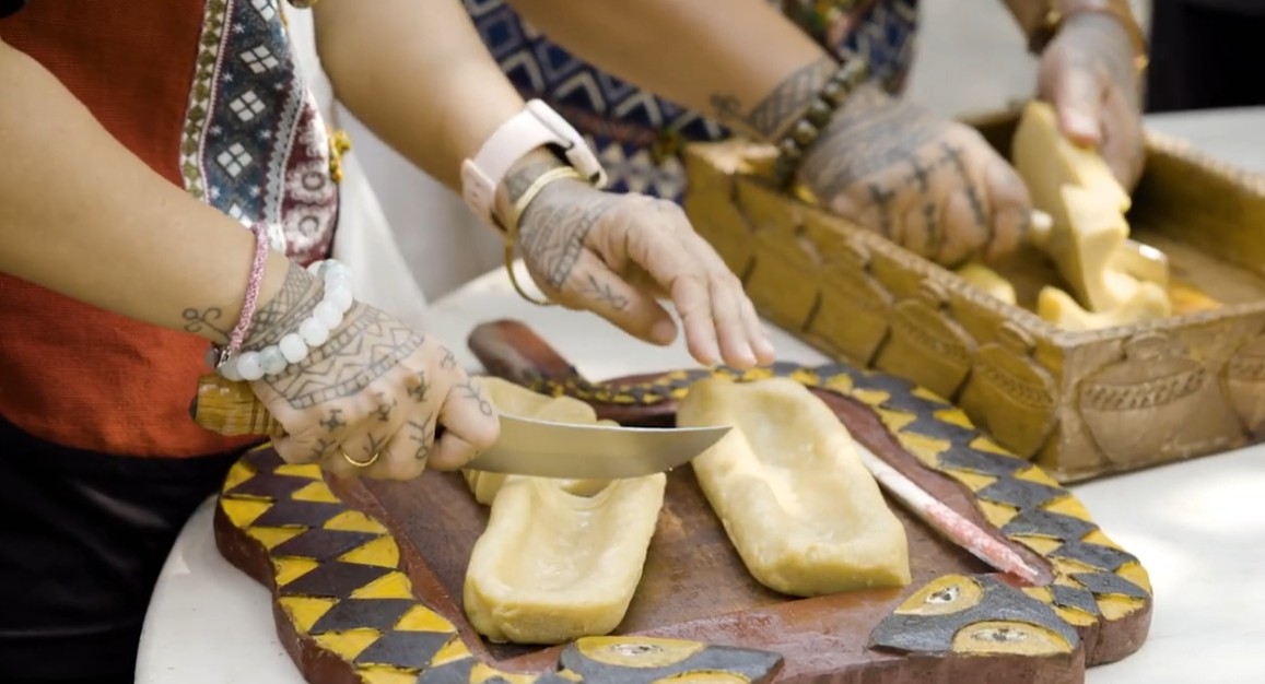 祭儀特製「福糕」,用小米做成管型的糕,其中四等分分送到四面八方的祖靈,其他分享給族人