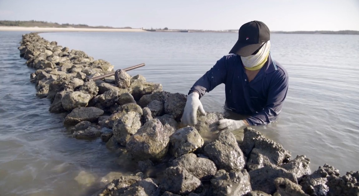 澎湖石滬群被列為台灣世界遺產潛力點,而紅羅村石滬工班則是這份遺產最堅實的守護者。 石滬主要利用沉重的黑色「玄武岩」堆疊而成,工班匠師必須精準掌握潮汐與水文,在海水漲落之間,挑選合適的石材進行修復。