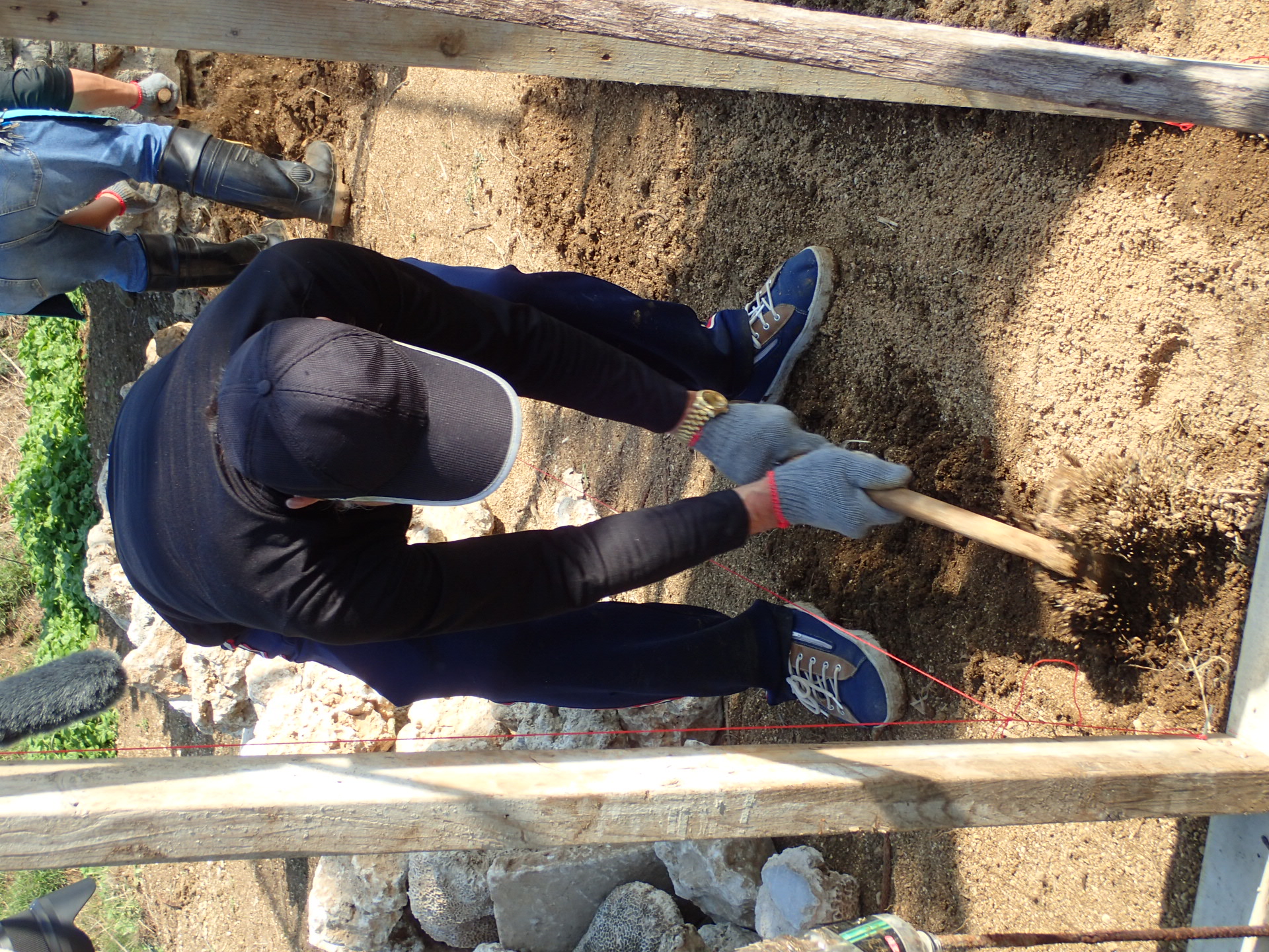 蓋菜宅第一步牽引線拉水平,第二步挖地基避免雨水掏空土壤 早期最深會挖一台尺(30.3公分),現今大約20公分