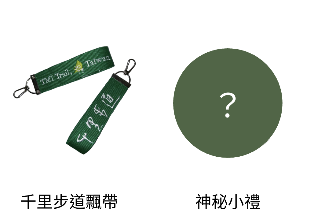 即日起至 115/4/23 前,加入捐款者行列,凡捐款滿 1,200 即贈一組千里認同小禮,亮眼小物,讓人一眼識別步道之友!(不限單筆捐款/定期定額捐款)