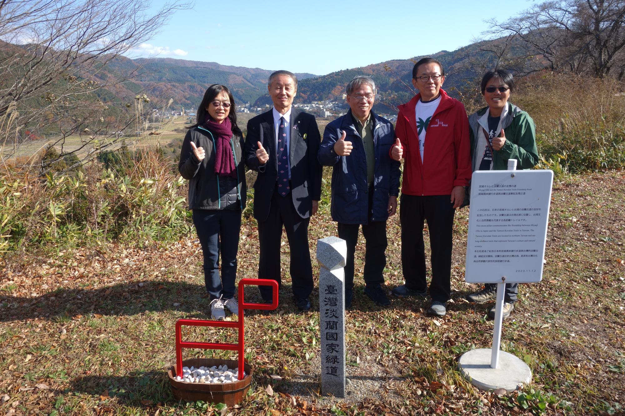 而台灣與宮城之間深厚的友誼至今已經七年,宮城偶來已有四條路線與淡蘭國家綠道締結友誼步道,也因此最後一天的行程特別安排我們到與「跑馬古道」締結友誼步道的「大崎.鳴子溫泉路線」,參觀在112年時設置的「淡蘭石柱」。大崎市吉田祐幸副市長與菊地惠一議員特地一早就來到此處等待我們的到來,一同欣賞壯麗的美景,並留下紀念合影,一同見證彼此友誼成果。