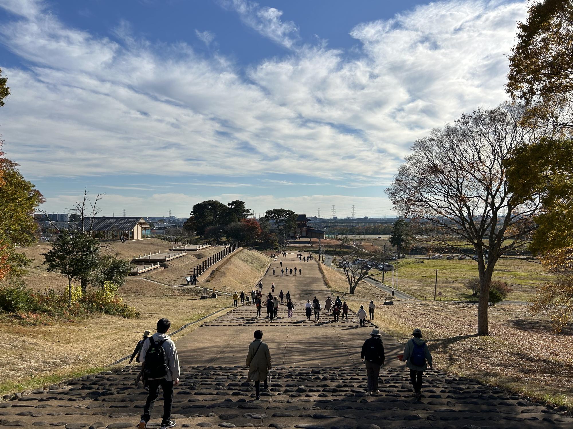 想必我們一定是備受眷顧,來訪的這些日子,天氣都十分美好,走在多賀城路線的這天也不例外。秋季獨有自然美景,為這趟健行增添許多驚喜。多賀城路線從起點JR仙石線多賀城車站開始,沿著這座城市的歷史、自然山徑漫步,最後抵達多賀城跡,是全程約8.5公里的城市路線。